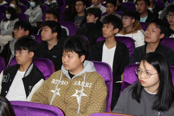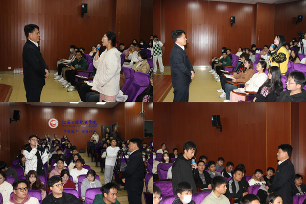 贺瑞虎还与同学们亲切进行现场问答互动,结合自己的亲身经历和经验,为同学们解开了关于提升学历、锻炼心性、工作就业等多方面的疑虑困惑,将知心人、热心人、引路人的角色代入课堂,真正俯下身子倾听青年学子所思所想,用心用情解决学生急难愁盼。现场气氛热烈,掌声雷动,同学们争相提问,情绪昂,备受鼓舞。