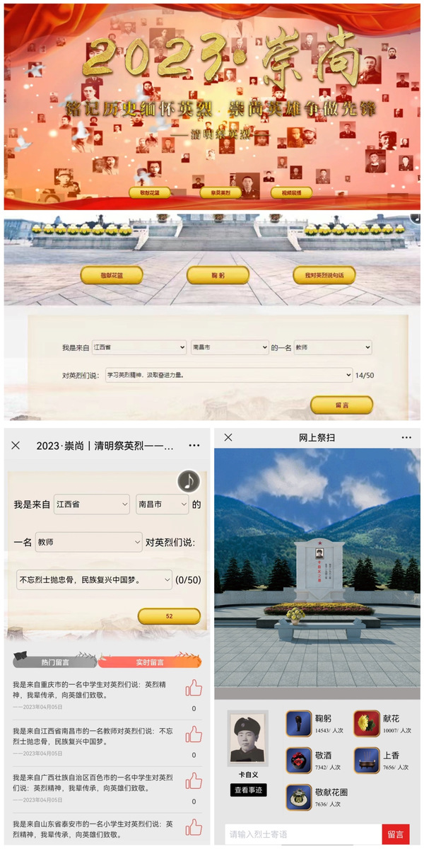 同志们在主题专页上深情留言,“庚续英烈精神、汲取奋进精神”、“缅怀英烈事迹,奋进伟大征程”、“浩气长存,英烈千古!缅怀先烈,砥砺前行!”“不忘烈士抛忠骨,民族复兴中国梦”等,一句句饱满真情深情的留言,充分表达了对先烈的无比崇敬之心和感念之情。