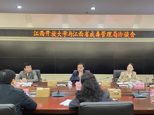 4月26日下午,江西省戒毒管理局党委委员、政治部主任常民一行4人来我校就课程教材体系建设、数字精品课程打造、非学历教育培训等方面合作进行交流座谈。校党委委员、副校长冯豫红出席并主持会议,发展规划处、教务处、社会教育学院、学习资源中心、智能技术学院、现代教育技术中心、马克思主义学院相关同志参加座谈。会前,校党委书记贺瑞虎亲临会场,对常民一行来校调研表示热烈的欢迎。