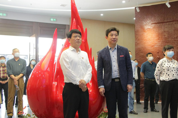 走进红色文化教育馆内,首先映入眼帘的是序厅正中央的火焰雕塑,序厅两侧有两块以“四史”为主题的浮雕墙,一、二楼分布着“四史”展厅和红色江西展厅。馆内通过图文展览、情景再现、体验互动、科技应用、舞台表演等陈展形式,全景式展示“四史”和江西红色历史。随着讲解员生动详尽的解说,大家依次参观了“党史”“新中国史”“改革开放史”和“社会主义发展史”四个展厅以及二楼的江西红色历史馆层。