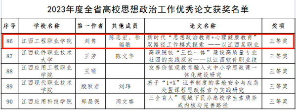 近日,由江西省教育厅组织开展的2023年度全省高校思想政治工作优秀论文和优秀案例征集活动落下帷幕。我校2支辅导员团队分别荣获2023年度全省高校思想政治工作优秀案例二等奖和2023年度全省高校思想政治工作优秀论文三等奖。成绩的取得,充分展现了我校辅导员队伍扎实的专业素养和过硬的能力本领,也是近年来米兰app入口站官网着力推进辅导员队伍专业化职业化建设的又一重要成果。(供稿:学工处 编辑:罗赛 责编:王松华)