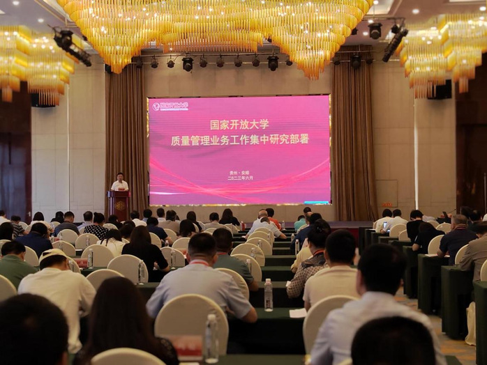 6月26日至27日,2023年国家开放大学质量管理业务工作集中部署会在贵州安顺召开。会议主题是以习近平新时代中国特色社会主义思想为指导,梳理问题,总结经验,构建质量治理新格局,形成有中国特色的开放大学质量文化,助力中国开放教育高质量发展。国家开放大学副校长李松出席会议并作主旨报告。全国45所地方开放大学校领导出席会议。