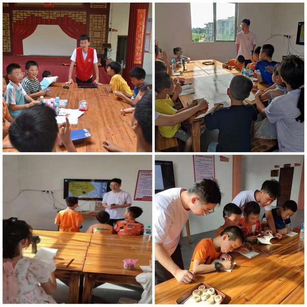 此外,实践团队还分组开展了趣味手工、歌舞、绘画课堂和《儿童社交心理学》《海姆利克急救法》等专题课堂,进一步扩大乡村儿童知识面,助力乡村文化振兴。