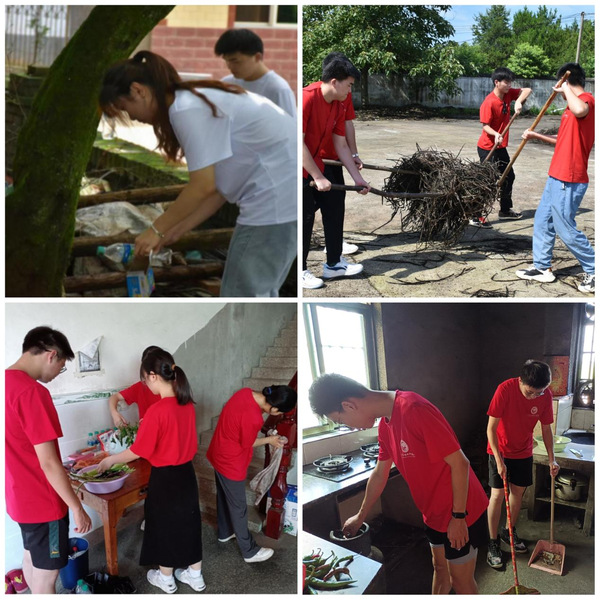 队员们还走村串巷,清理了村内堆放已久的草堆,为古樟树进行养护并清理周边垃圾,对漆家村居家养老服务中心“长寿之家”的地面与垃圾进行全面清理打扫,努力让乡村净起来、亮起来、美起来。队员们相互配合、劳动现场气氛热烈、干劲十足。实践队员们还耐心地引导村民讲究卫生,注意垃圾分类。这些劳动实践活动虽“小”,却颇具“温度”,培养了学生们劳动意识、劳动习惯、劳动精神,激励着大家更加积极地参加到劳动实践服务活动当中。