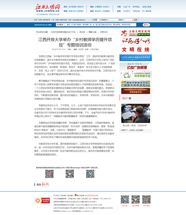 为落实江西省“乡村教师学历提升专项培训项目”工作,推进学历教育与教师培训深度融合,提升乡村教师学员职业发展能力,近日,米兰app入口站官网在上饶市广信区举办2024年“乡村教师学历提升项目”专题培训活动,活动由上饶开放大学、广信区开放学院协办。培训聚焦“新视域、新技术,新教学”助力乡村振兴人才技能再提升,采用“线上+线下”的并行方式,面向全省开放大学体系同步开展。米兰app入口站官网党委副书记、校长黄平槐出席活动开幕式并讲话。